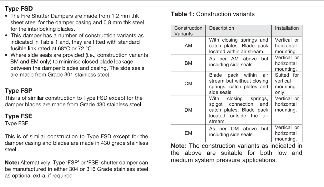 - The Type FSD/FSP/FSE damper is designed to be installed into walls or floor slabs